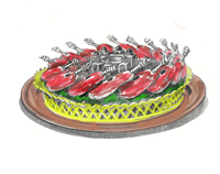 The Vizier announced each new dish as it arrived on sheepback from the kitchen. In spite of her disgust, Talina leant forward with interest. Years of poring over French cookbooks made nearly all these dishes familiar to her - though she'd never had the luxury of tasting them.